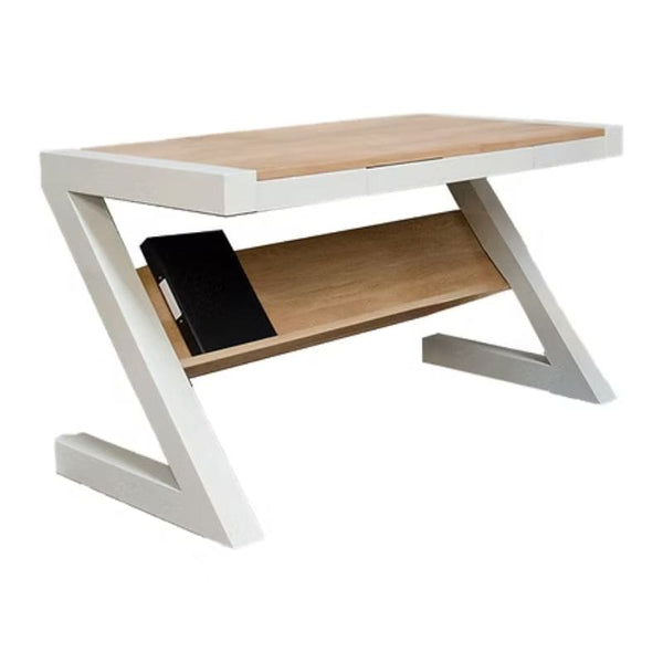 - Transform your workspace with our Z Shaped Desk in Painted Pine and Oak! This original design features a unique z-shaped base, adding a touch of modernity to any room. Crafted with high-quality painted pine and oak, this desk is both stylish and sturdy. Upgrade your office decor today!