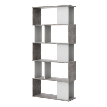 Maze Open Bookcase w/ 4 Shelves in Concrete & White